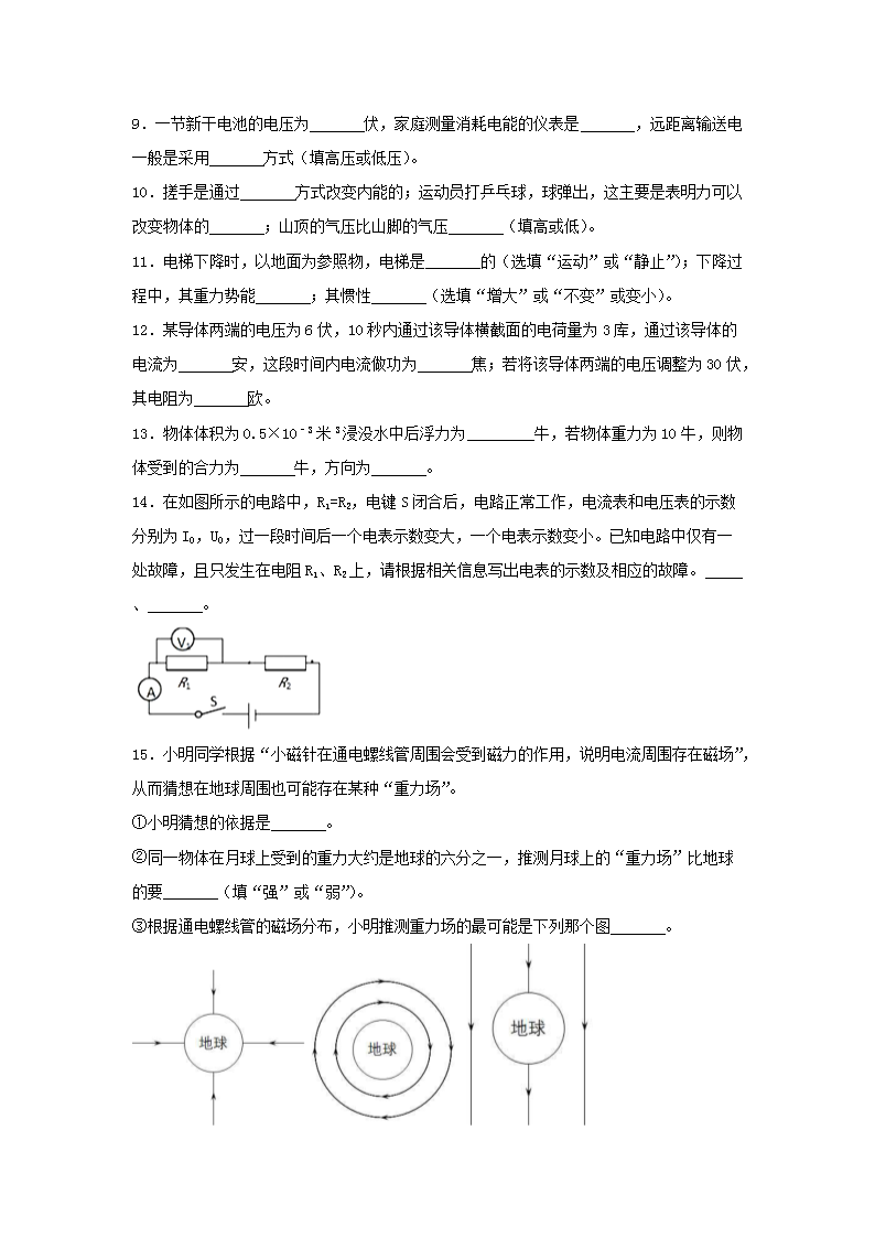 【文档名称】 2018年上海嘉定中考物理真题及答案(Word版).doc