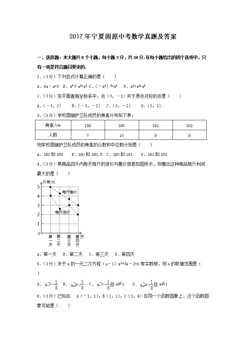 【文档名称】 2017年宁夏固原中考数学真题及答案(Word版).doc