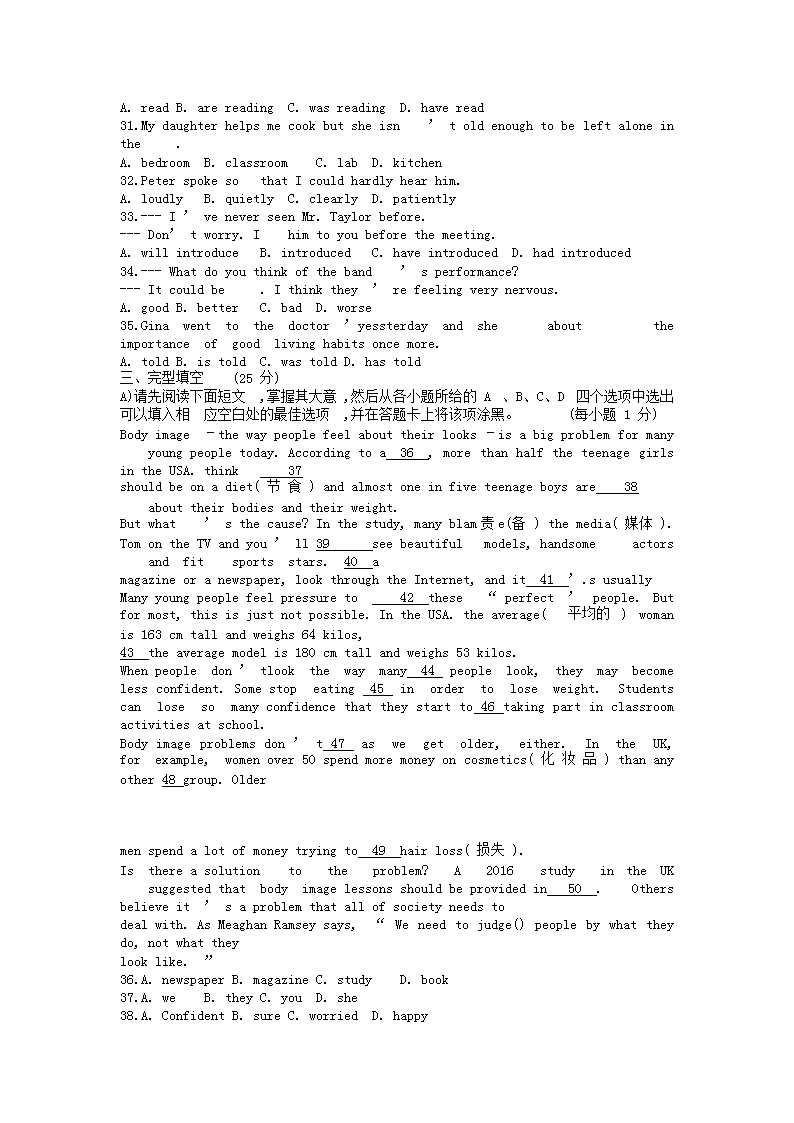【文档预览】 无忧考网整理发布2019年江西中考英语真题及答案(Word版),前五页预览如下:
