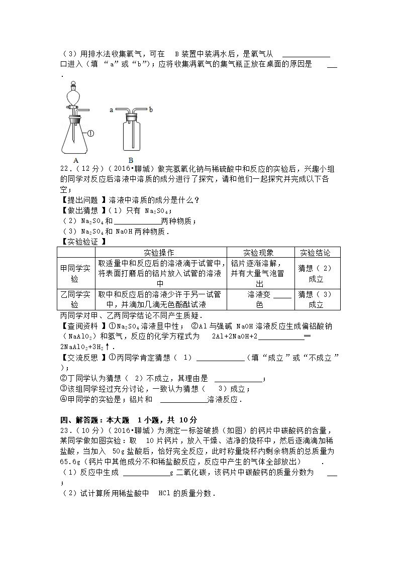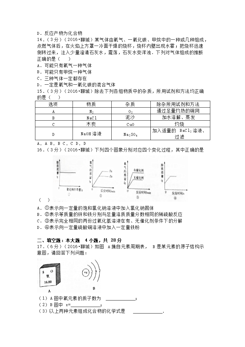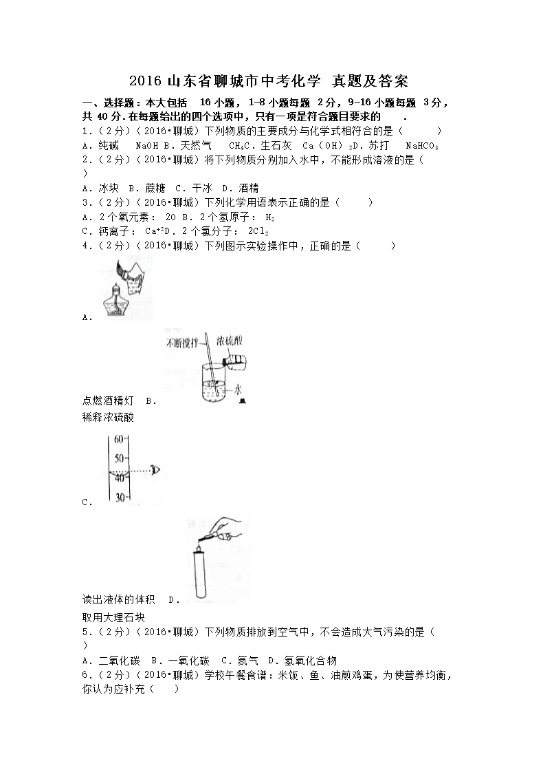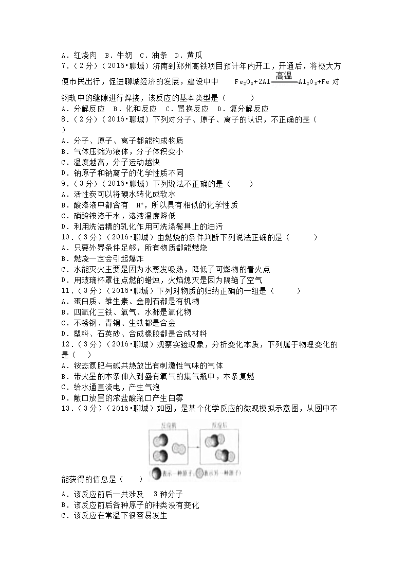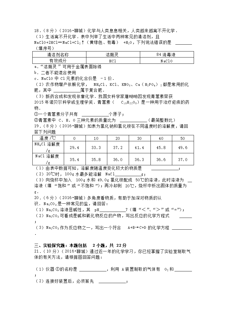 【文档名称】 2016山东省聊城市中考化学真题及答案(Word版).doc
