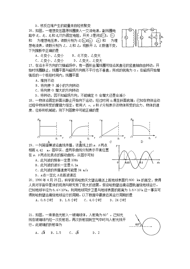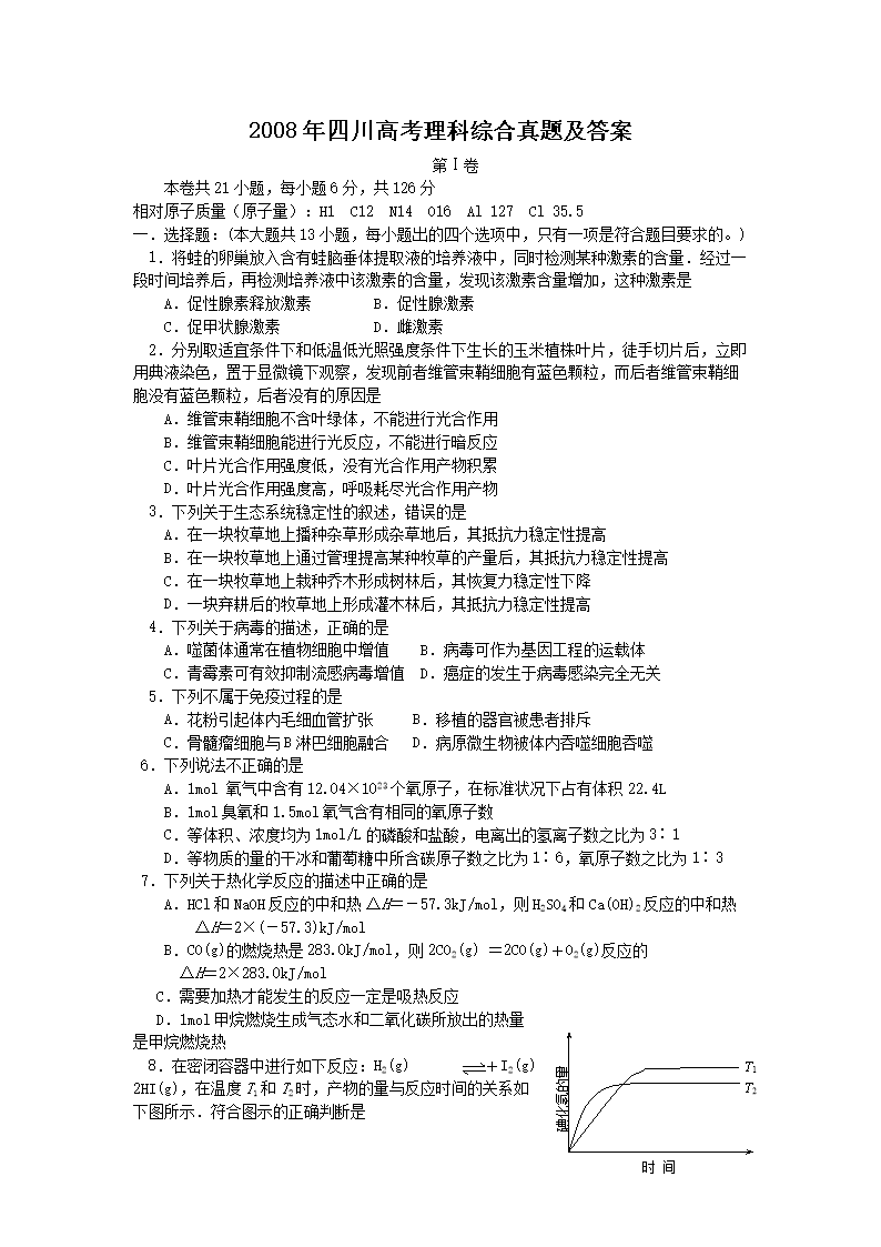 【文档名称】 2008年四川高考理科综合真题及答案(Word版).doc