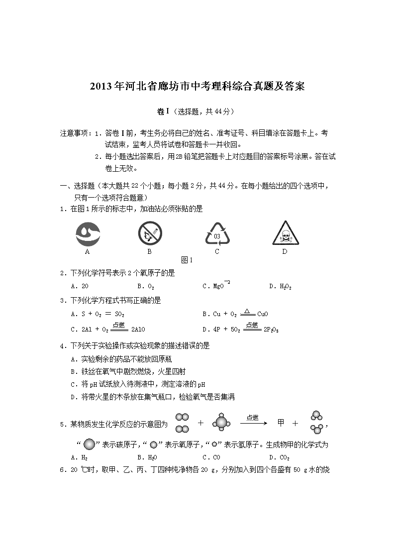【文档名称】 2013年河北省廊坊市中考理科综合真题及答案(Word版).doc