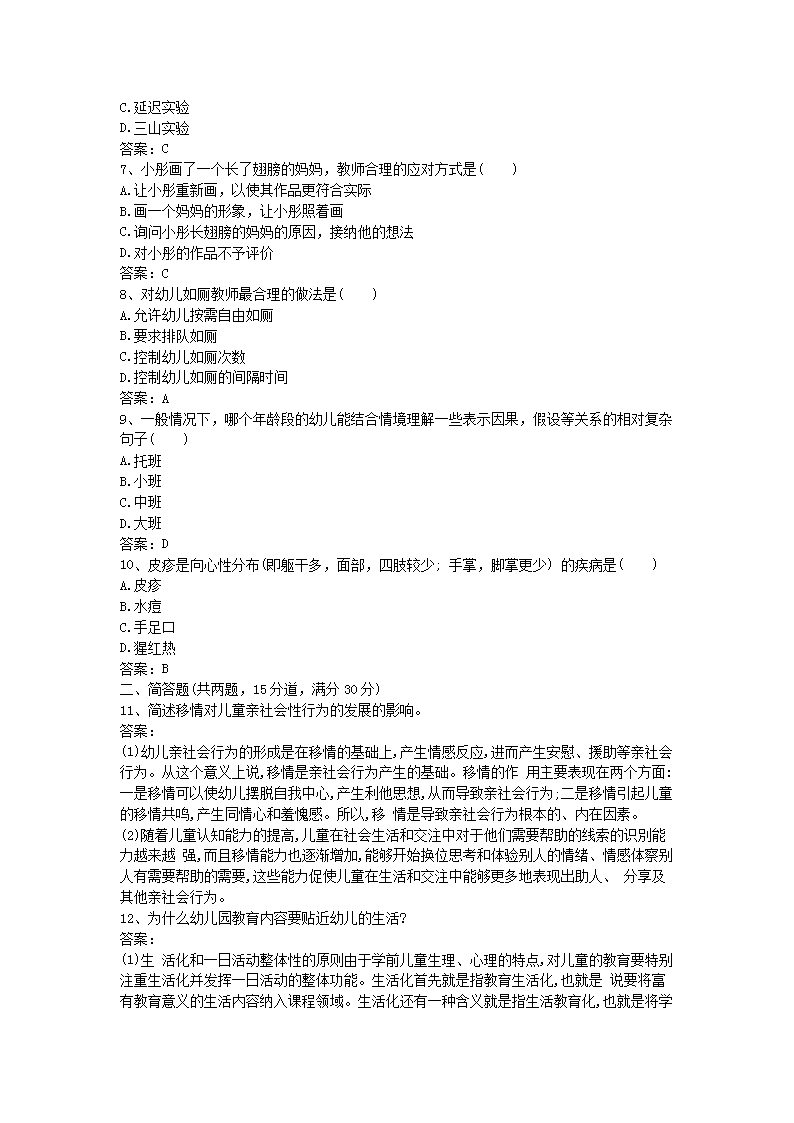 【文档名称】 2017下半年浙江教师资格考试幼儿保教知识与能力真题及答案(Word版).doc
