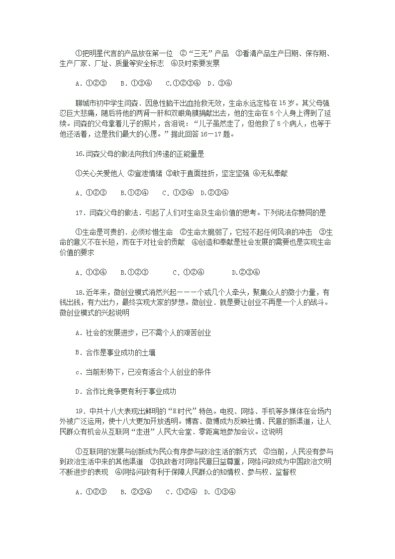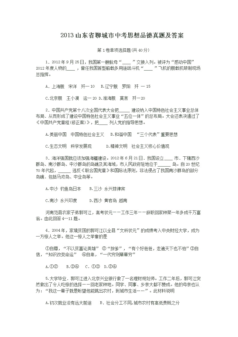 【文档预览】 无忧考网整理发布2013山东省聊城市中考思想品德真题及答案(Word版),前五页预览如下: