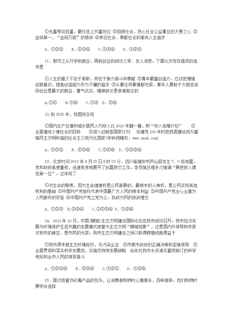 【文档名称】 2013山东省聊城市中考思想品德真题及答案(Word版).doc