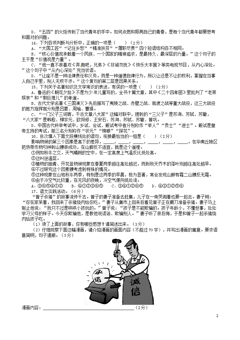 【文档名称】 2016年湖北省黄冈市中考语文真题及答案(Word版).doc