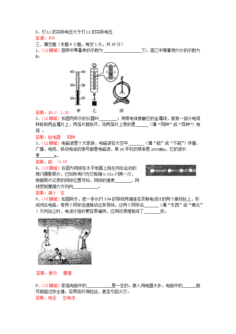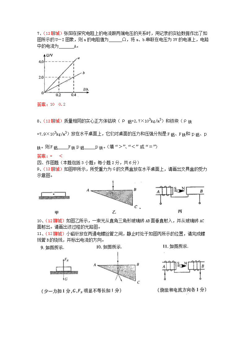 【文档名称】 2012山东省聊城市中考物理真题及答案(Word版).doc