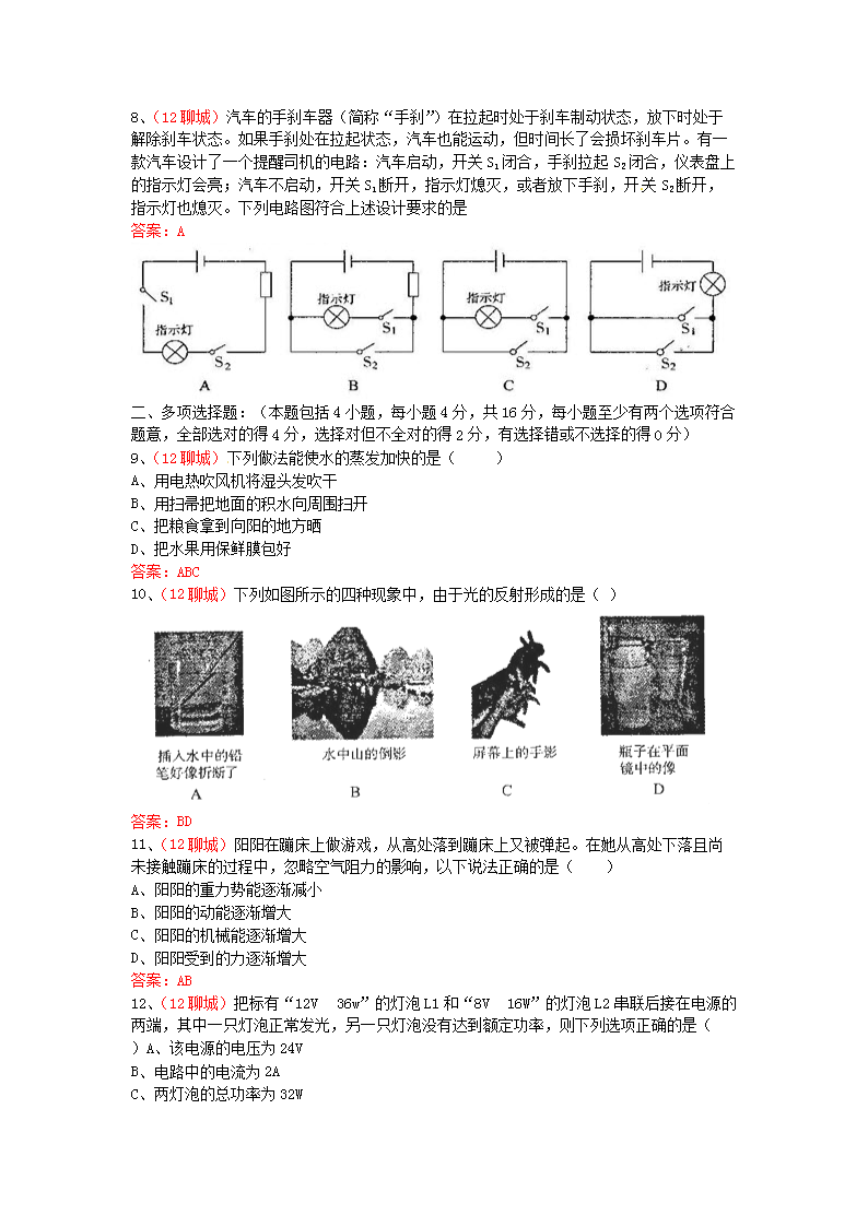 【文档预览】 无忧考网整理发布2012山东省聊城市中考物理真题及答案(Word版),前五页预览如下: