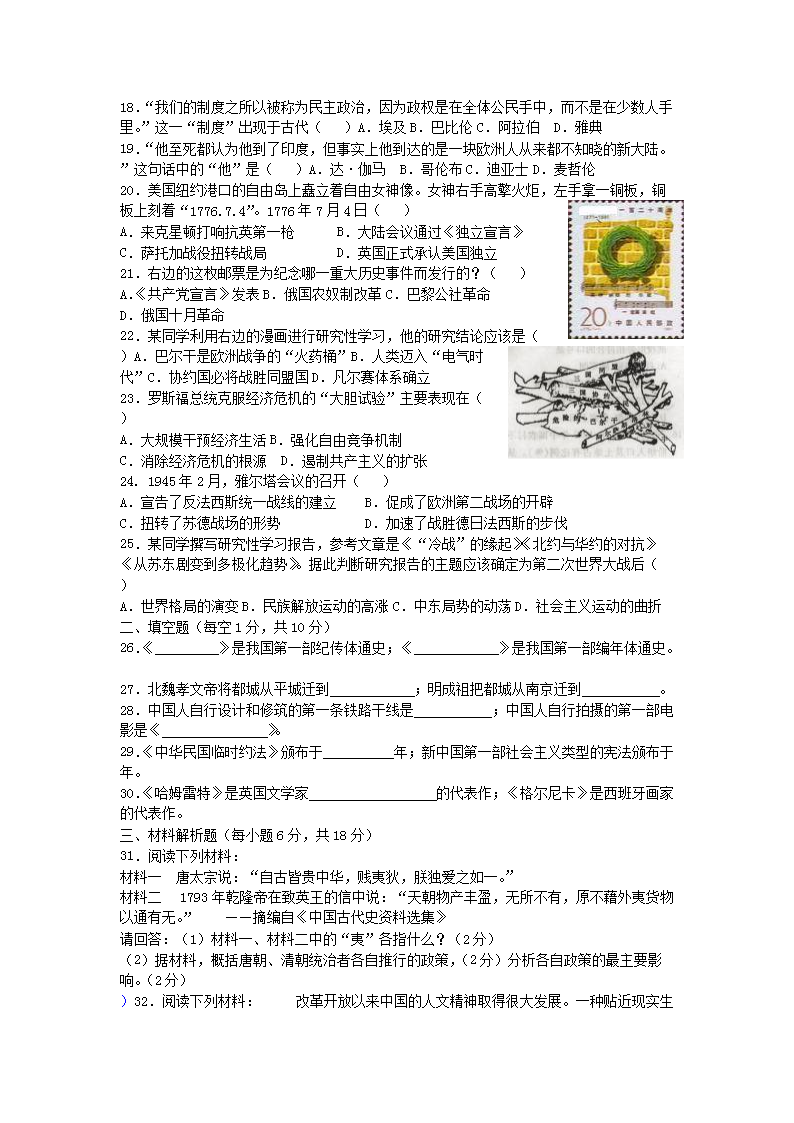 【文档预览】 无忧考网整理发布2011山东省聊城市中考历史真题(Word版),前五页预览如下: