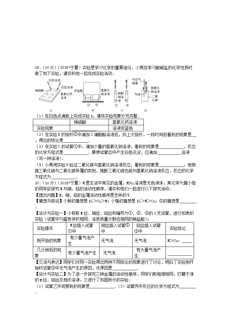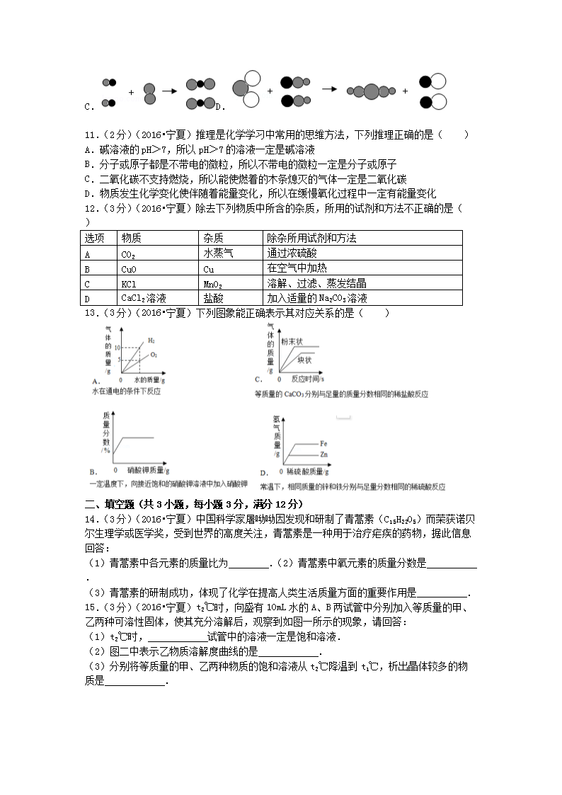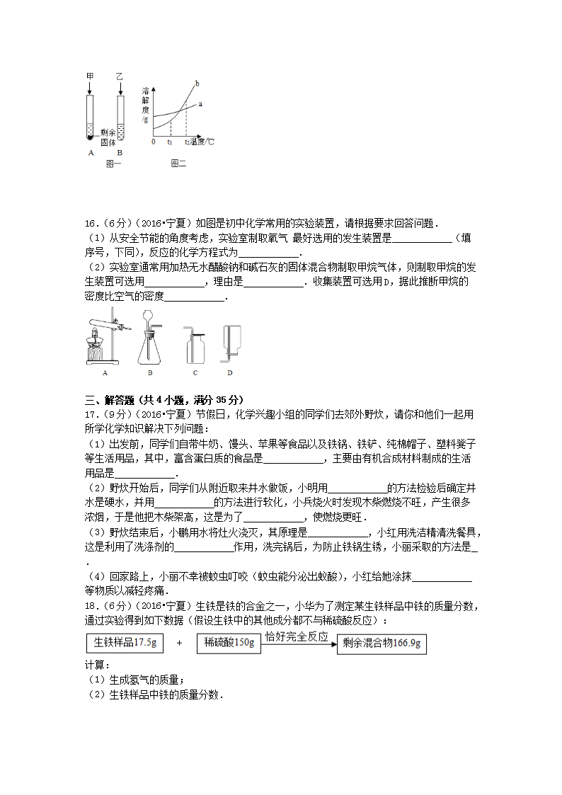 【文档名称】 2016年宁夏固原中考化学真题及答案(Word版).doc