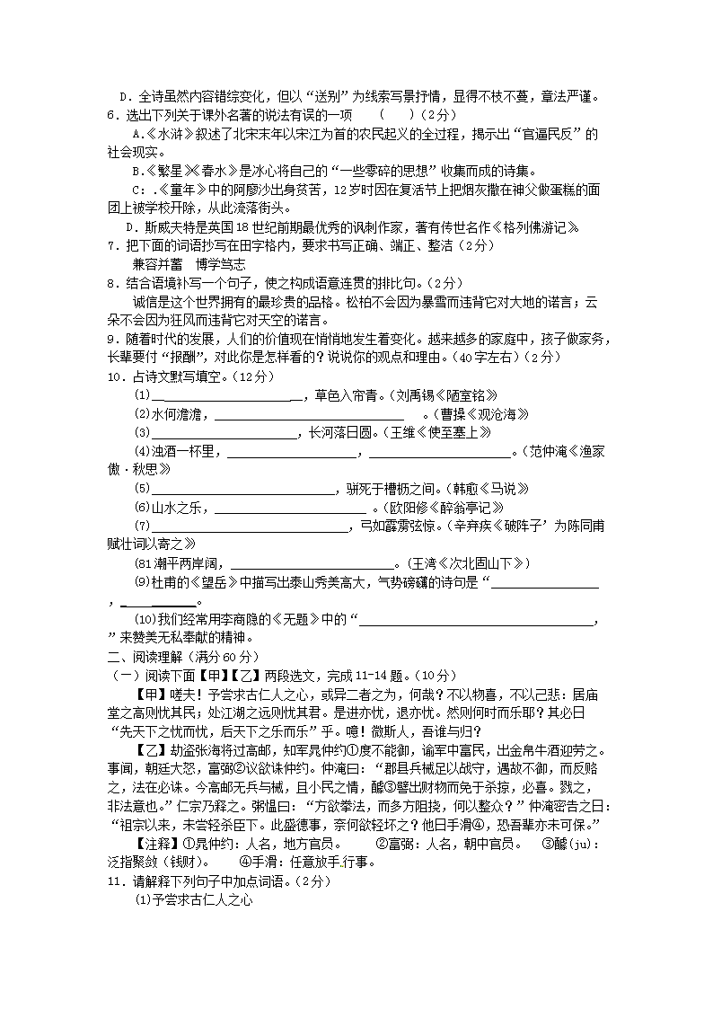 【文档预览】 无忧考网整理发布2014年辽宁省抚顺市中考语文真题及答案(Word版),前五页预览如下: