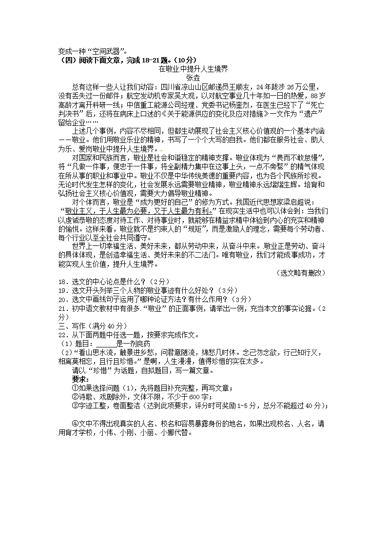 【文档预览】 无忧考网整理发布2014年辽宁省阜新市中考语文真题及答案(Word版),前五页预览如下: