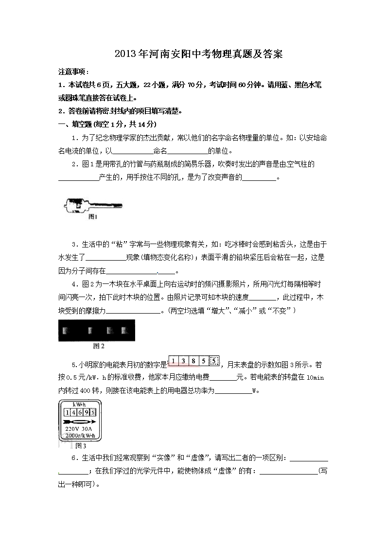 【文档名称】 2013年河南安阳中考物理真题及答案(Word版).doc