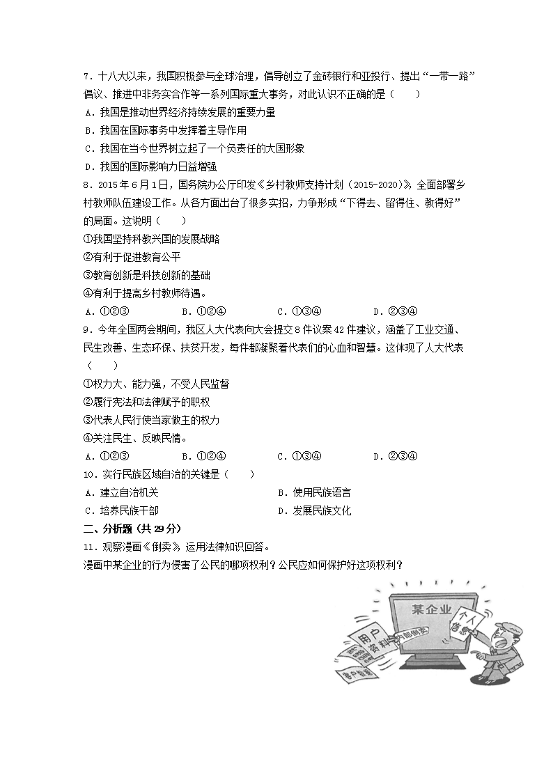 【文档名称】 2016年宁夏石嘴山中考道德与法治真题及答案(Word版).doc