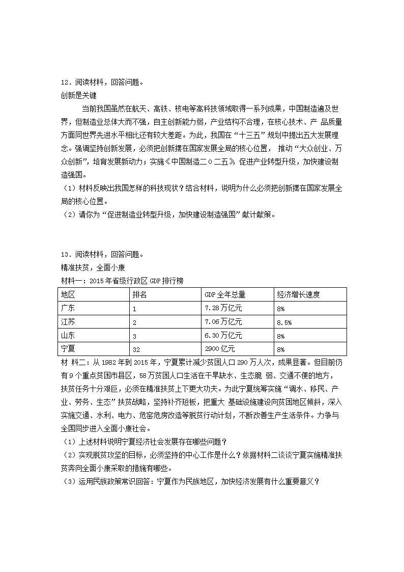 【文档预览】 无忧考网整理发布2016年宁夏石嘴山中考道德与法治真题及答案(Word版),前五页预览如下: