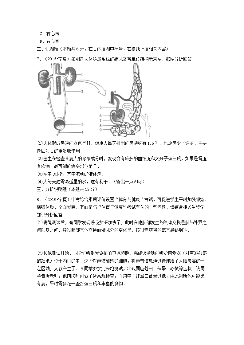 【文档名称】 2016年宁夏石嘴山中考生物真题及答案(Word版).doc