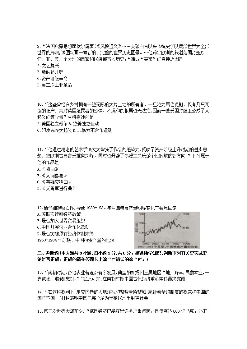 【文档名称】 2019年江西赣州中考历史真题及答案(Word版).doc