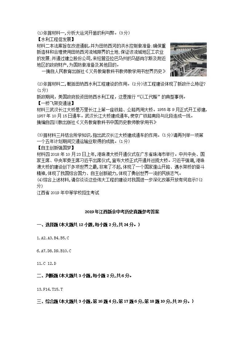 【文档名称】 2019年江西新余中考历史真题及答案(Word版).doc