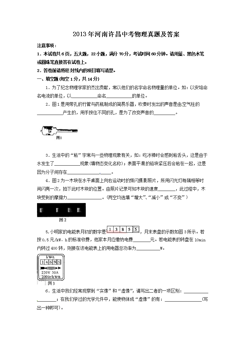 【文档预览】 无忧考网整理发布2013年河南许昌中考物理真题及答案(Word版),前五页预览如下: