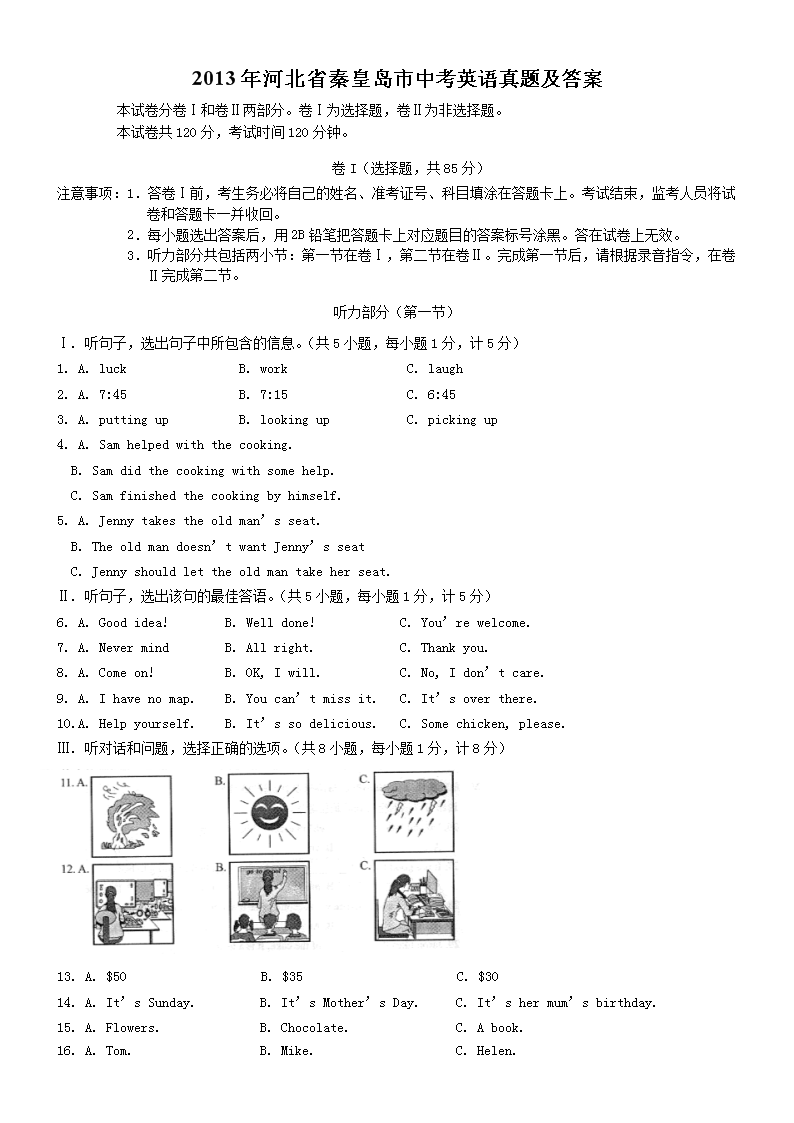 【文档名称】 2013年河北省秦皇岛市中考英语真题及答案(Word版).doc