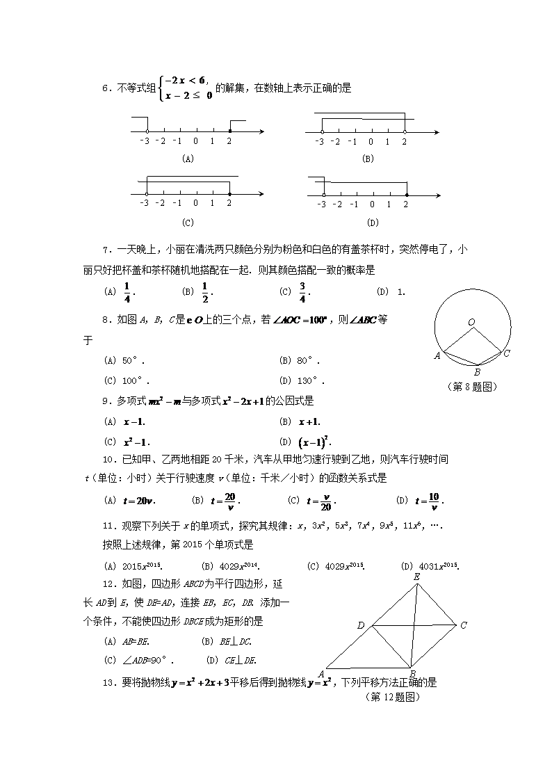 【文档名称】 2015山东省临沂市中考数学真题及答案(Word版).doc