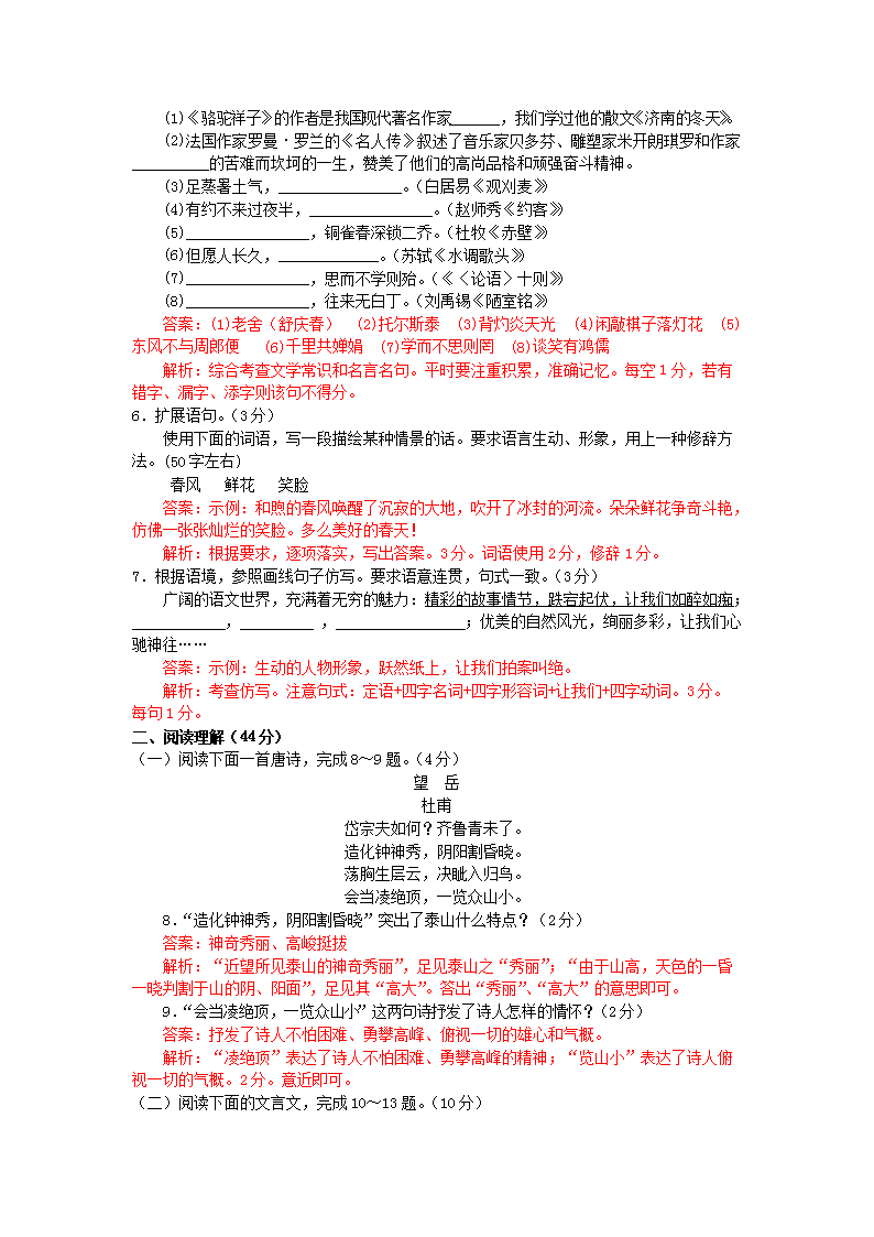【文档预览】 无忧考网整理发布2014山东省临沂市中考语文真题及答案(Word版),前五页预览如下: