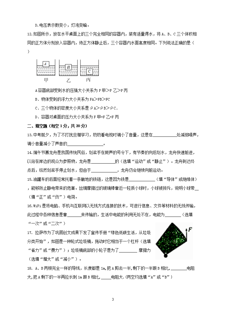 【文档名称】 2019年西藏那曲中考物理真题及答案(Word版).doc