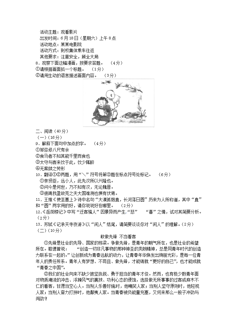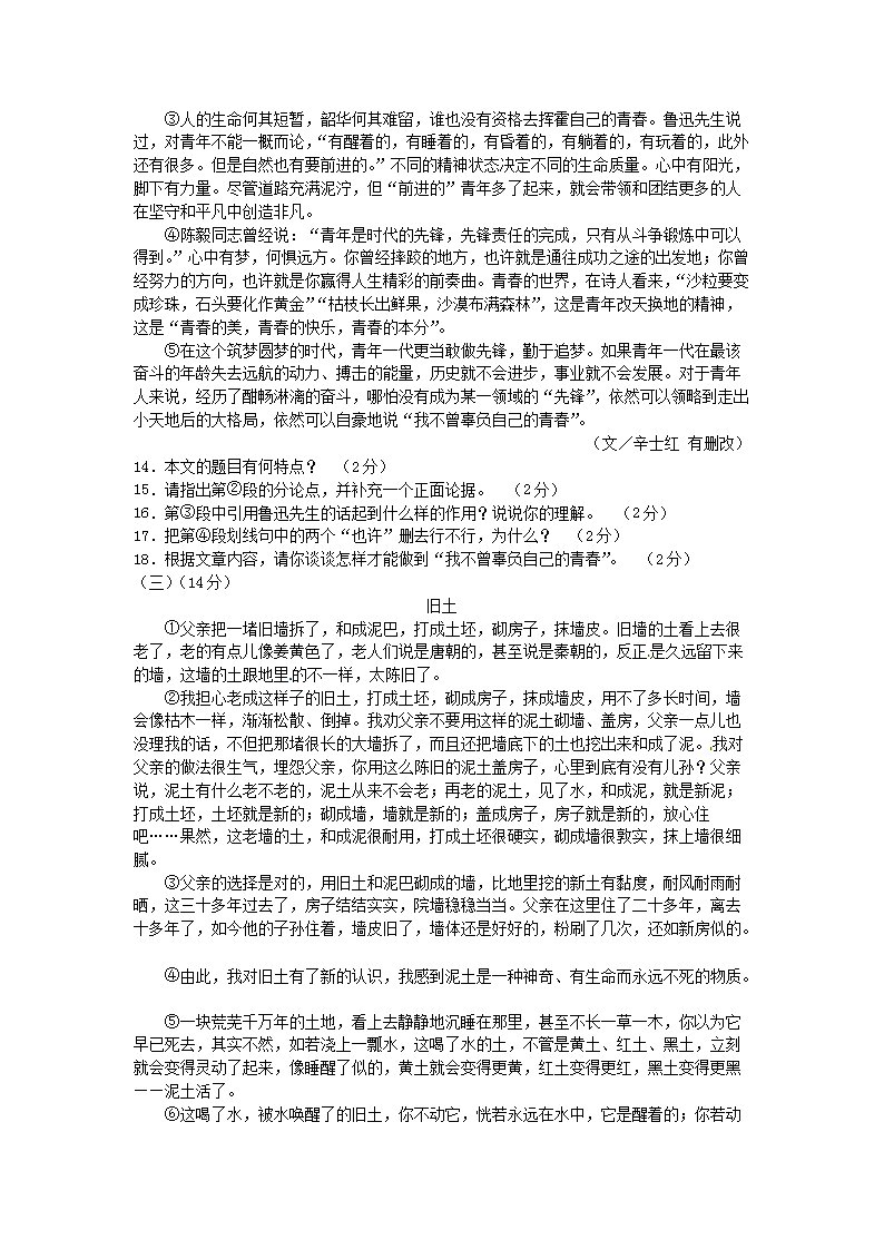 【文档预览】 无忧考网整理发布2016年宁夏中卫中考语文真题及答案(Word版),前五页预览如下: