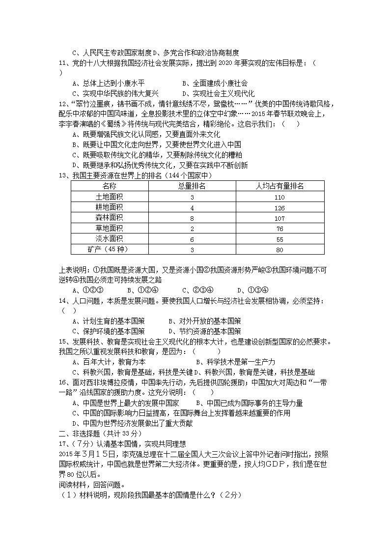 【文档名称】 2015年辽宁省朝阳市中考政治真题及答案(Word版).doc