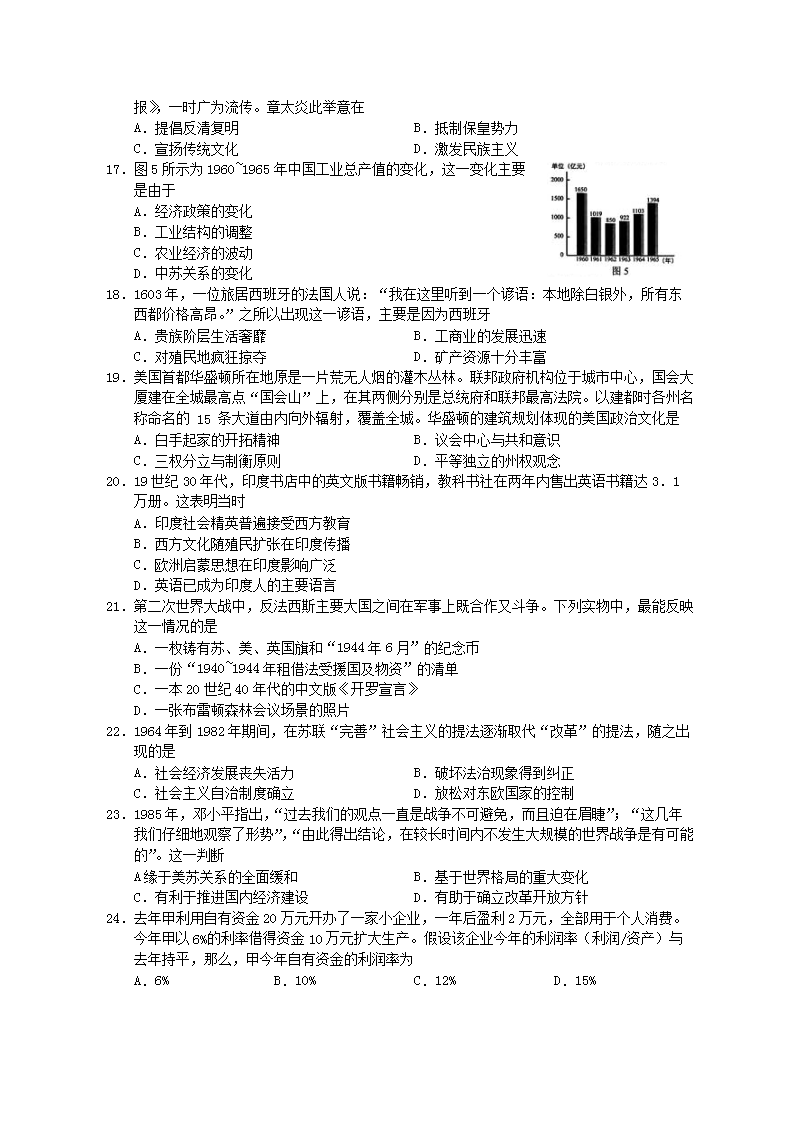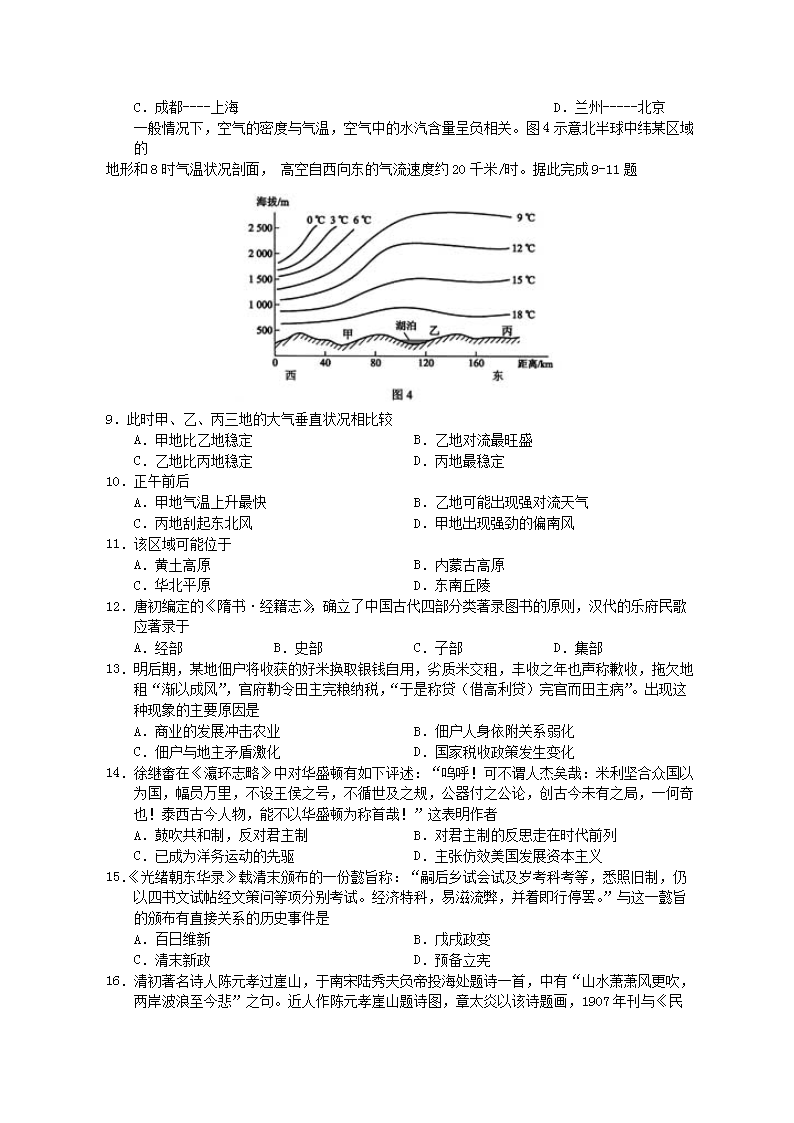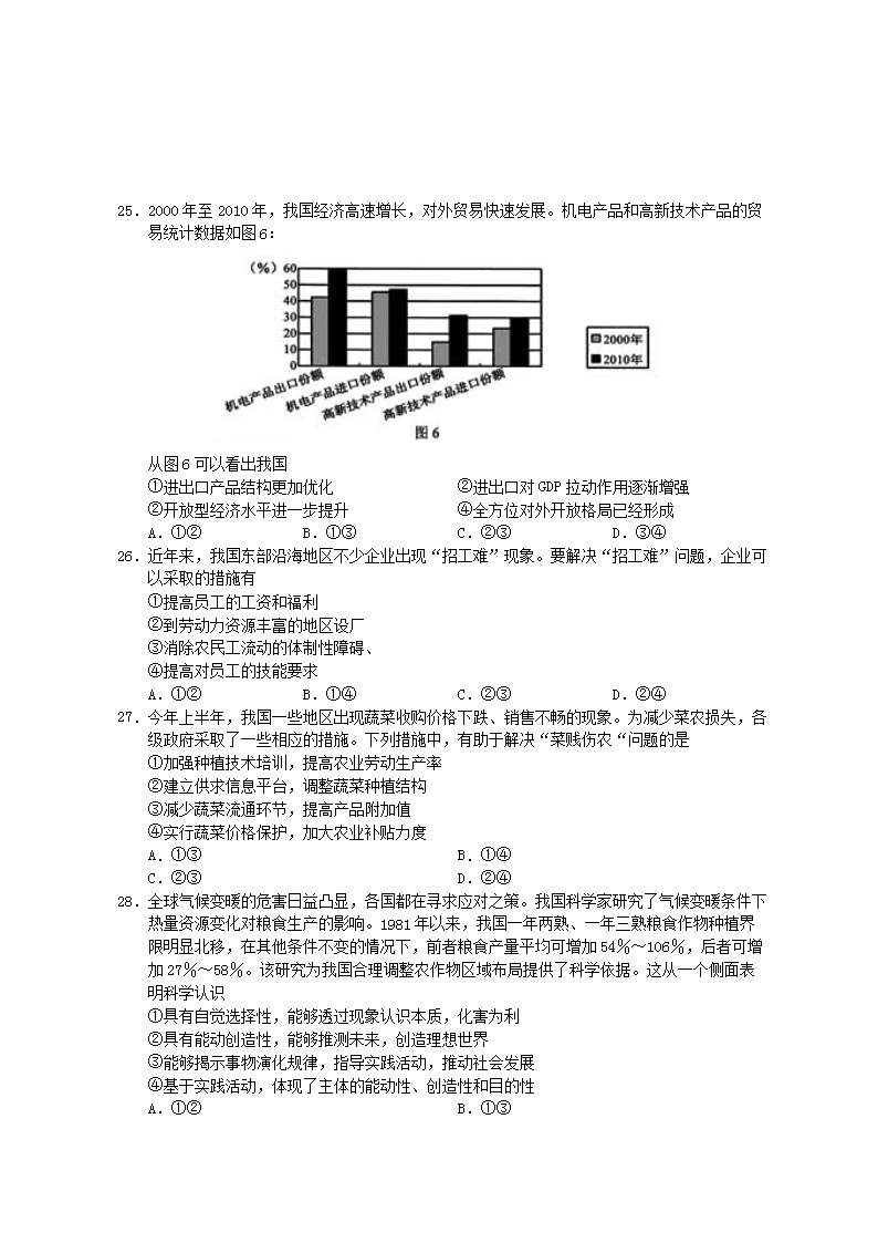 【文档名称】 2011年西藏高考文科综合真题及答案(Word版).doc