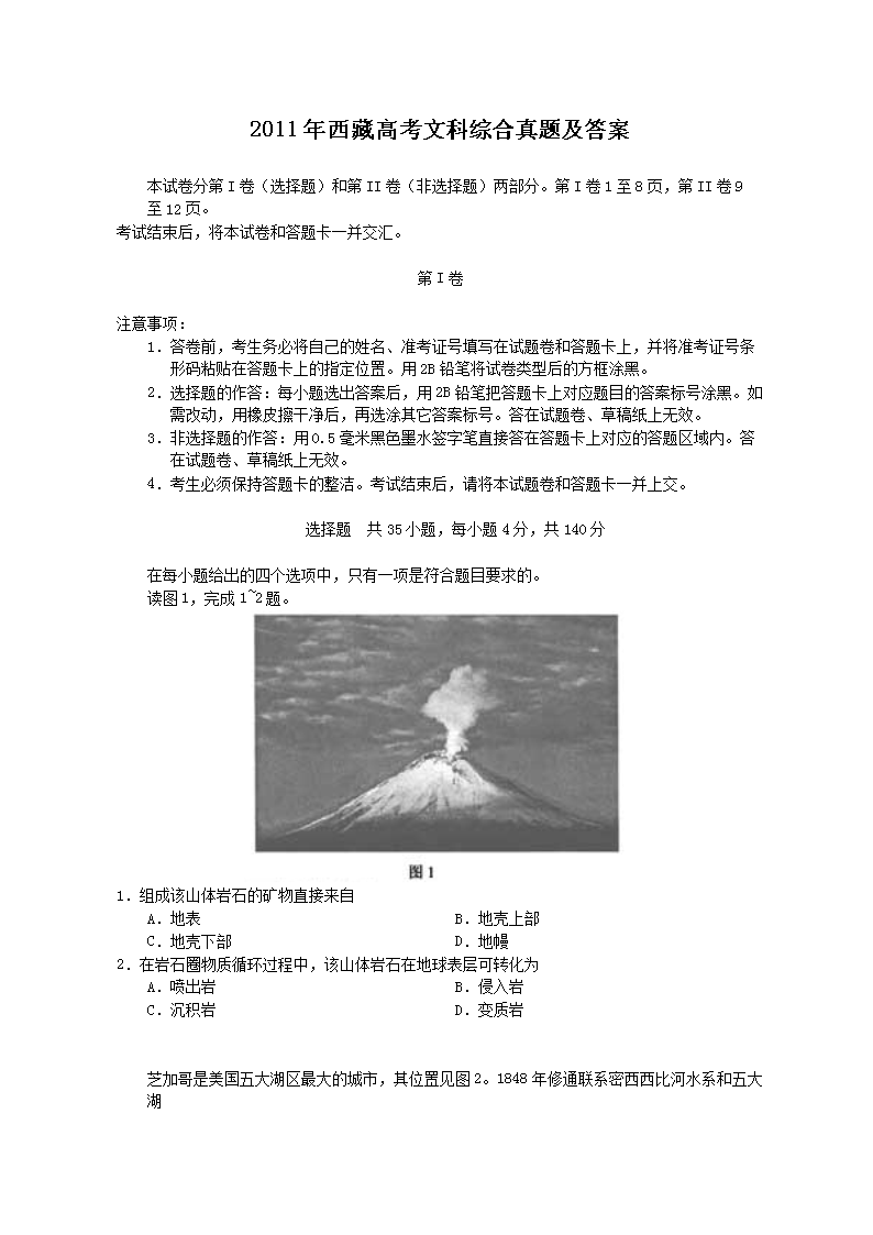 【文档预览】 无忧考网整理发布2011年西藏高考文科综合真题及答案(Word版),前五页预览如下:
