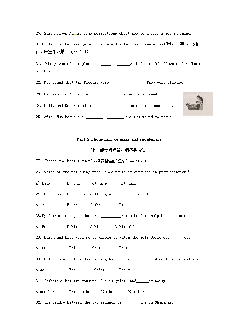 【文档预览】 无忧考网整理发布2018年上海浦东中考英语真题及答案(Word版),前五页预览如下:
