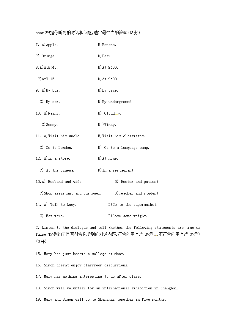 【文档名称】 2018年上海浦东中考英语真题及答案(Word版).doc