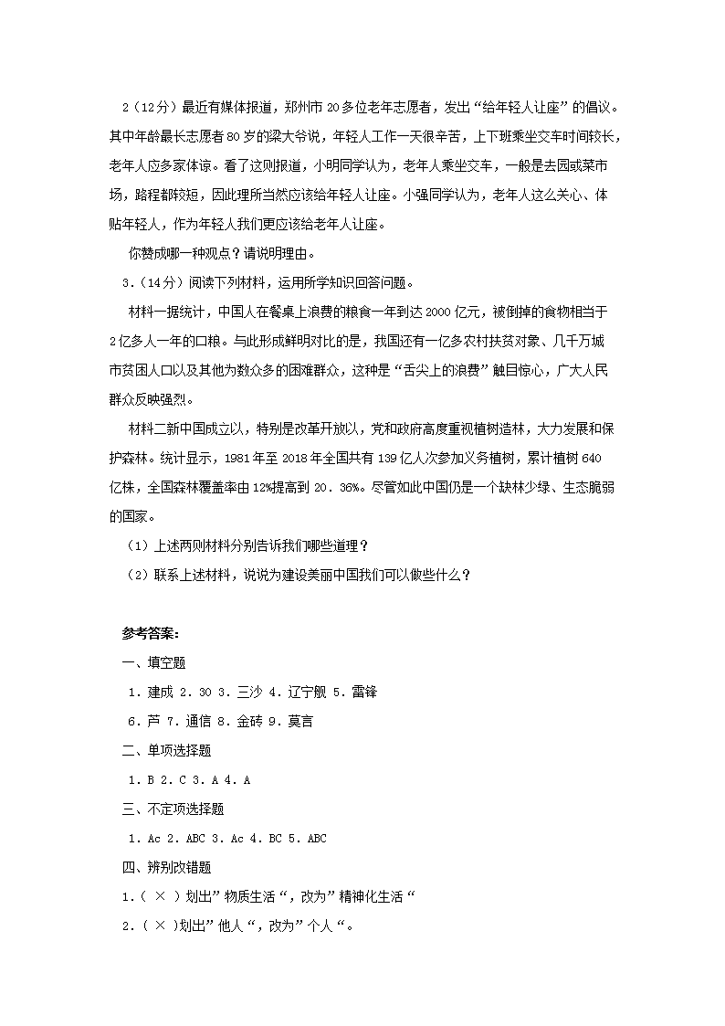 【文档名称】 2018年上海浦东中考政治真题及答案(Word版).doc