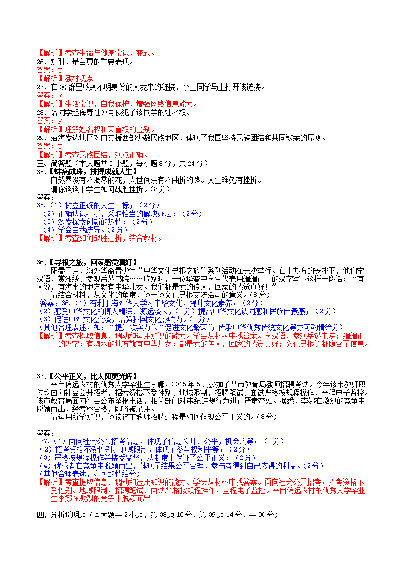 【文档名称】 2015年湖南省长沙市中考政治真题及答案(Word版).doc