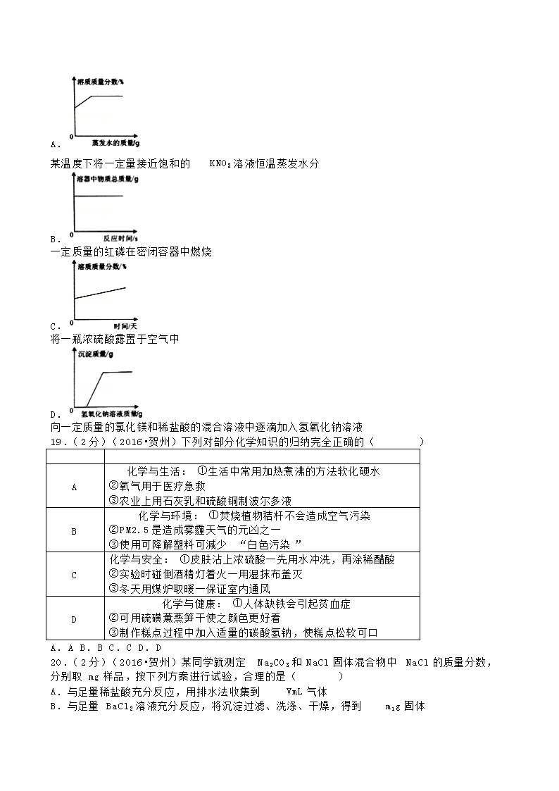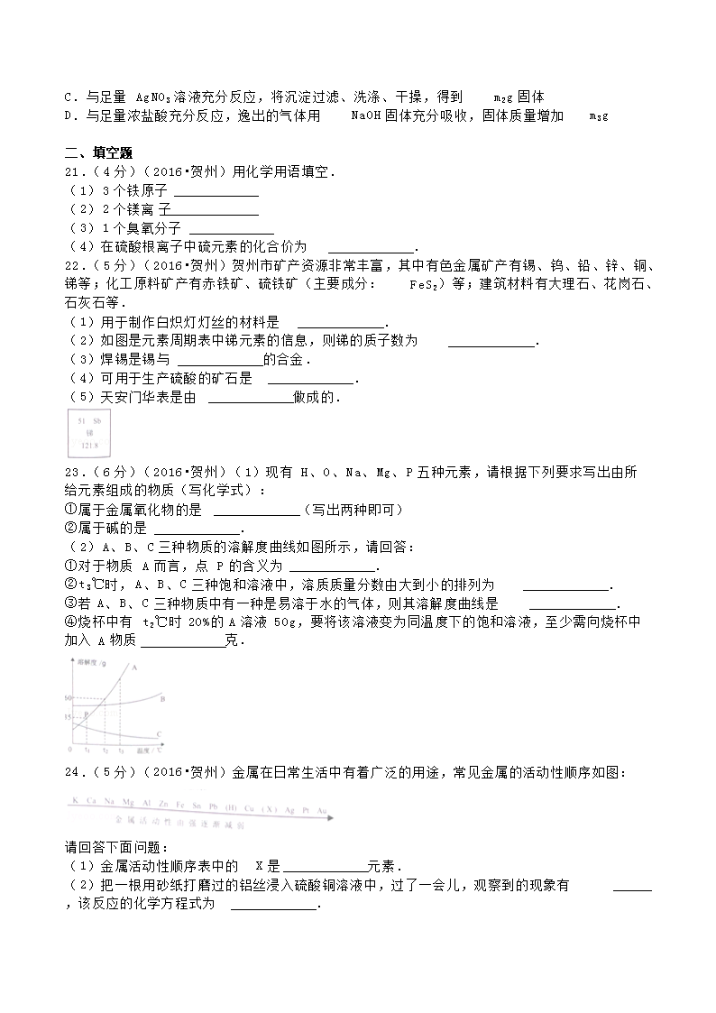 【文档名称】 2016年广西贺州市中考化学真题及答案(Word版).doc