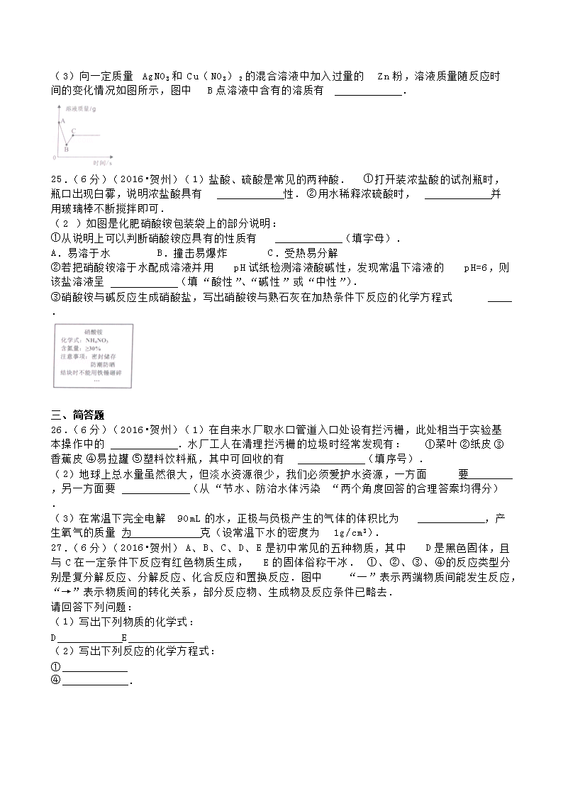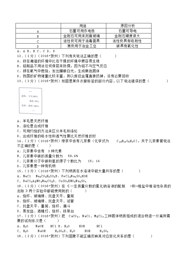 【文档预览】 无忧考网整理发布2016年广西贺州市中考化学真题及答案(Word版),前五页预览如下: