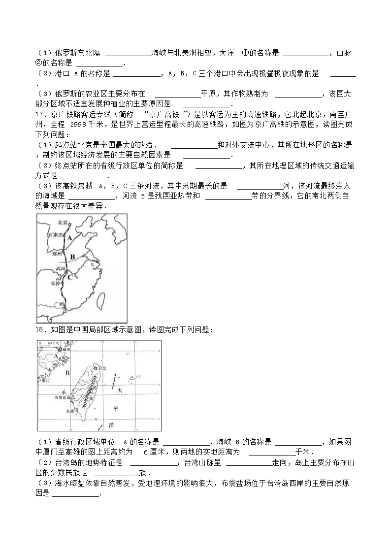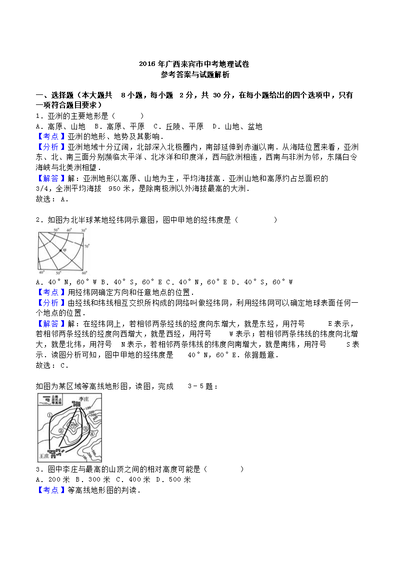 【文档名称】 2016年广西来宾市中考地理真题及答案(Word版).doc