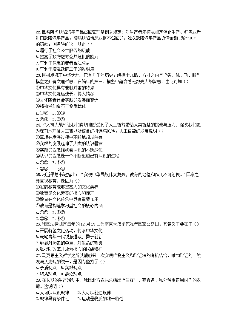 【文档名称】 2019上半年山东教师资格考试初中政治学科知识与教学能力真题及答案解析(Word版).doc