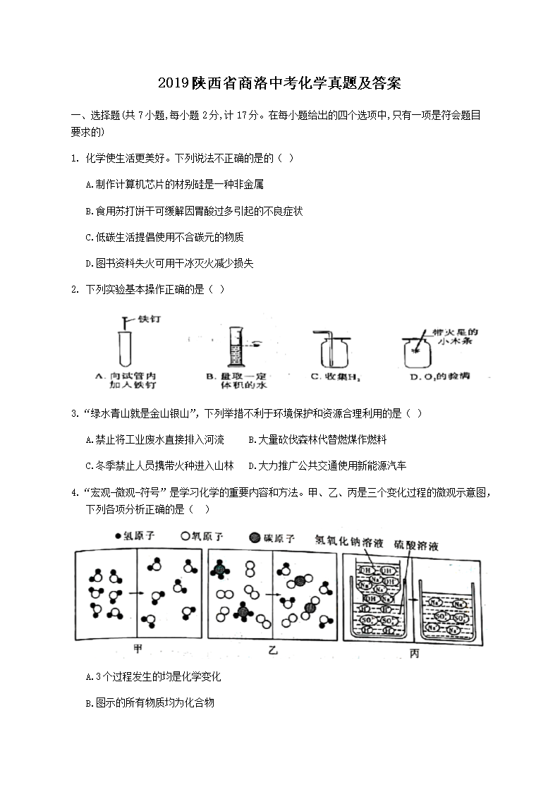 【文档预览】 无忧考网整理发布2019陕西省商洛中考化学真题及答案(Word版),前五页预览如下: