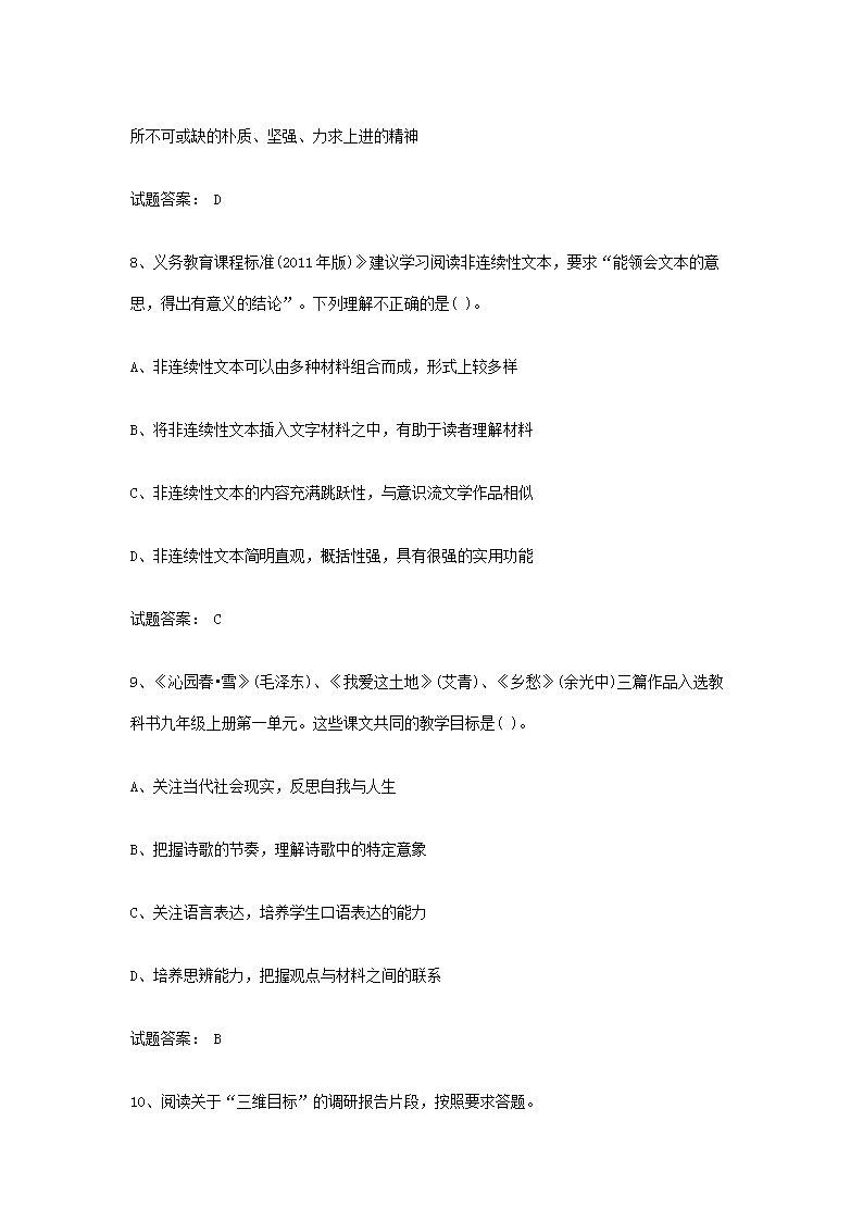 【文档预览】 无忧考网整理发布2019上半年浙江教师资格考试初中语文学科知识与教学能力真题及答案(Word版),前五页预览如下: