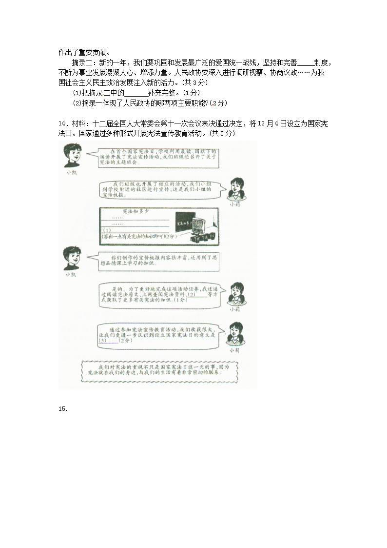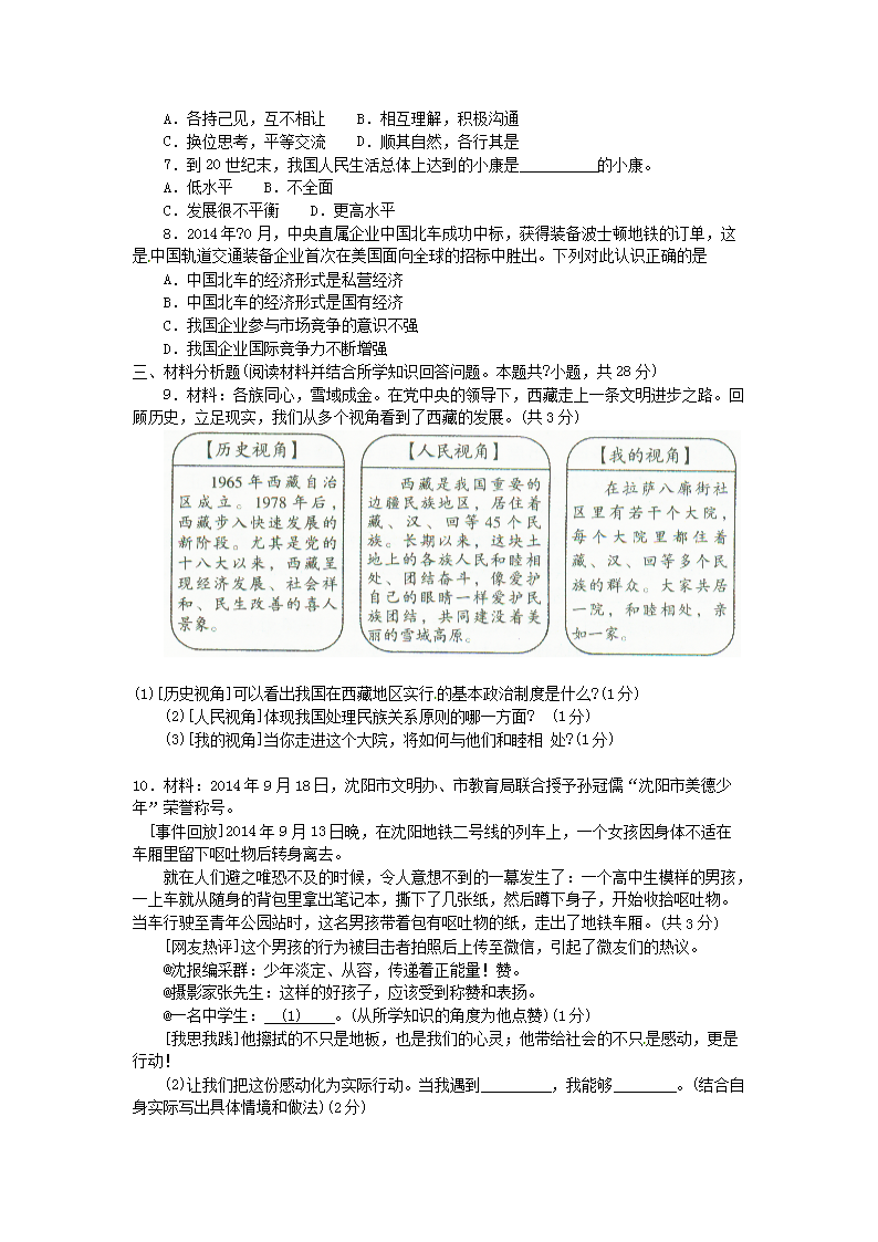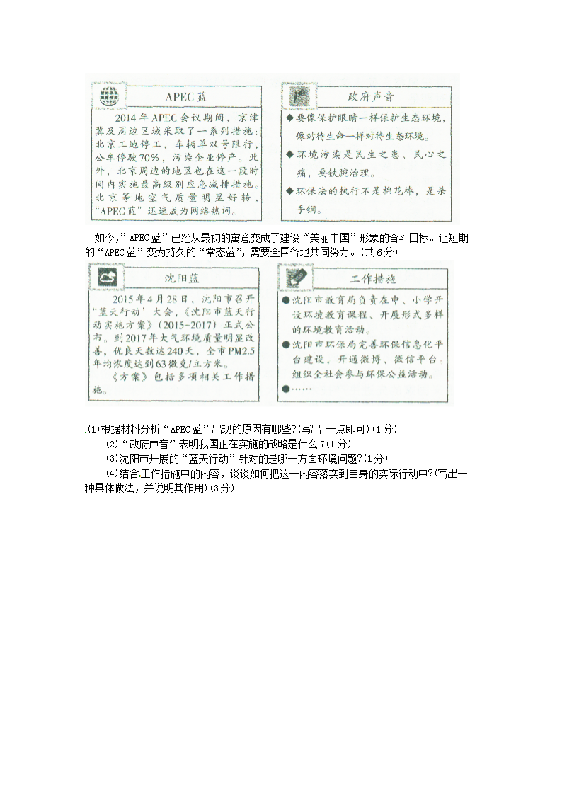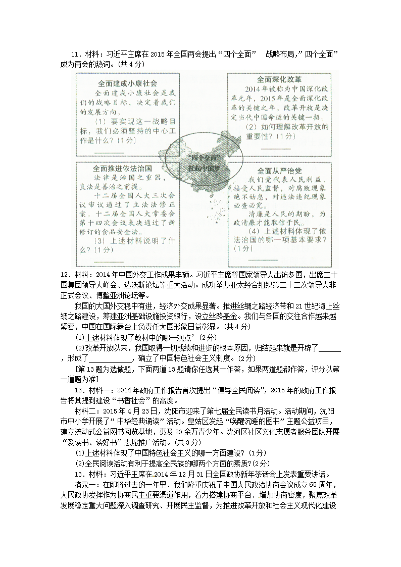 【文档名称】 2015年辽宁省沈阳市中考政治真题及答案(Word版).doc