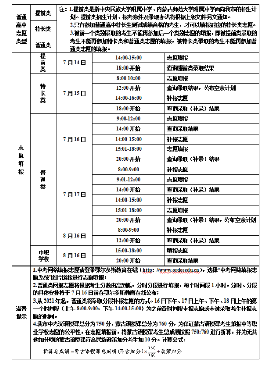 【#中考# #2021年内蒙古鄂尔多斯中考政策解读#】®无忧考网从鄂尔多斯教育在线了解到,2021年内蒙古鄂尔多斯中考政策解读公告已经发布,据悉汉语授课总分由2020年的710分提高至今年的750分;蒙古语授课总分由2020年的720分提高至今年的760分。为方便考生了解情况,现将有关事宜通知如下: