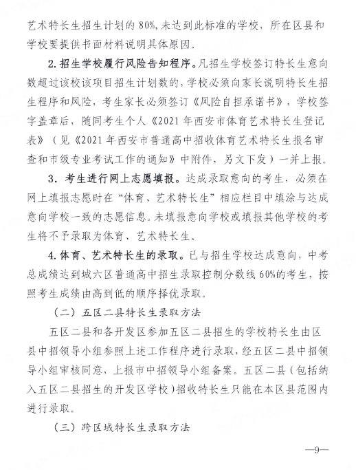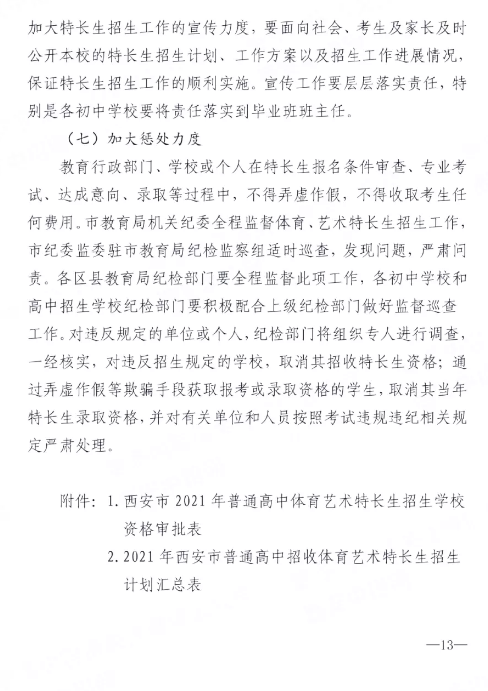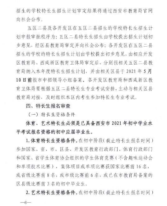 2021陕西西安中考特长生政策发布 最.docx