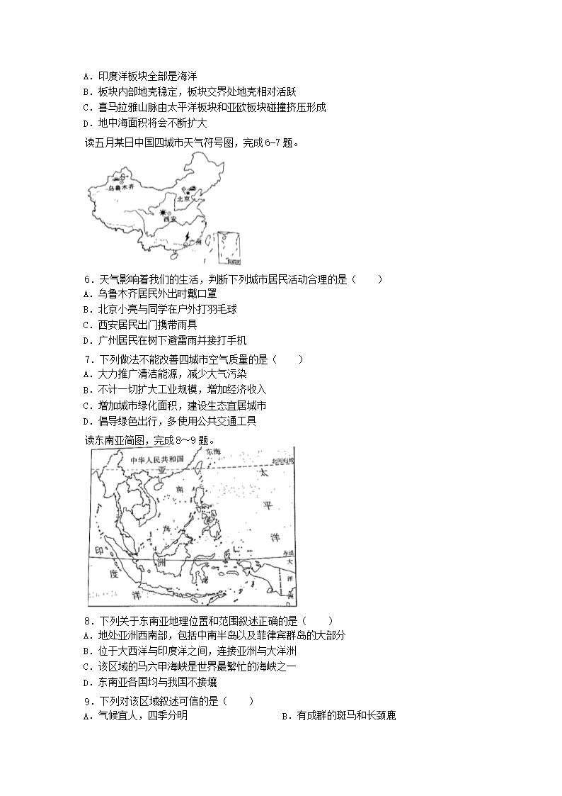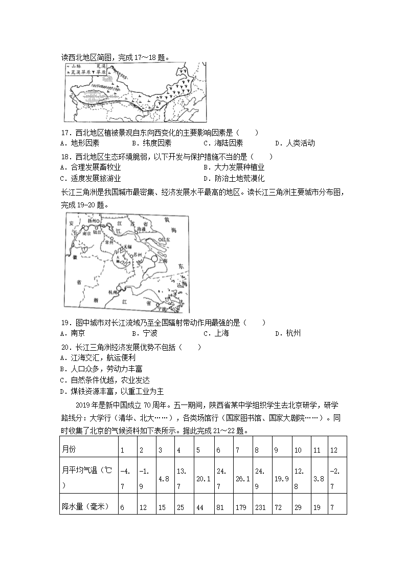 【文档名称】 2019陕西省铜川中考地理真题及答案(Word版).doc