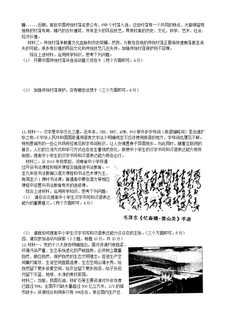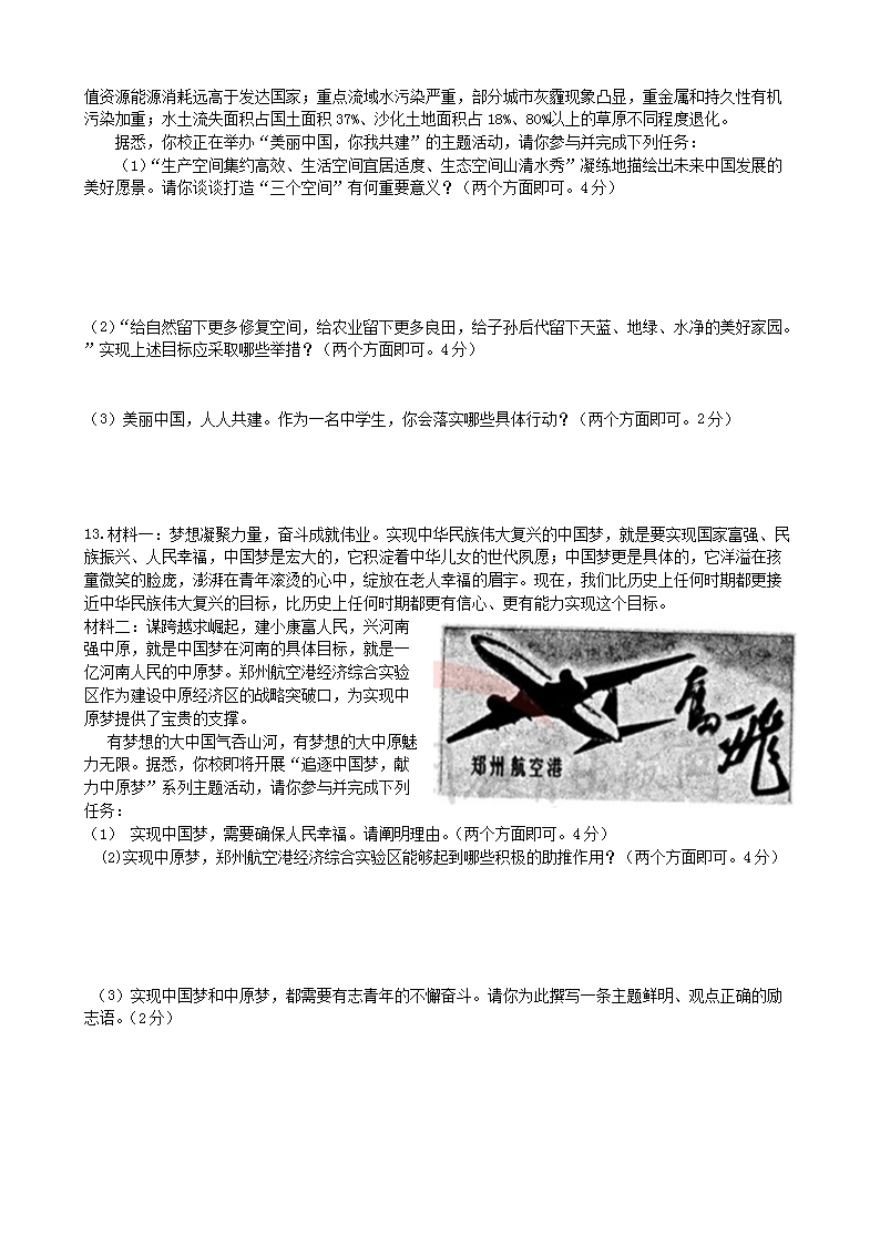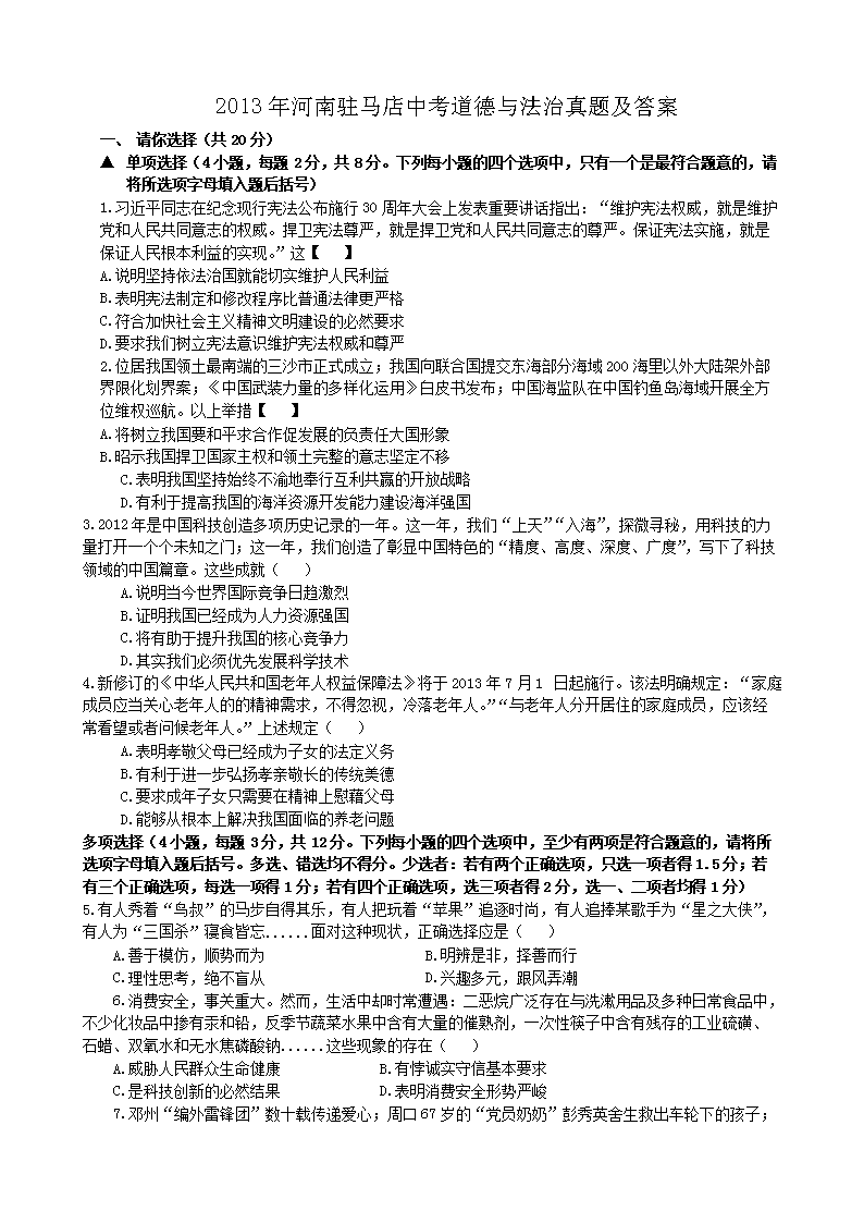 【文档名称】 2013年河南驻马店中考道德与法治真题及答案(Word版).doc