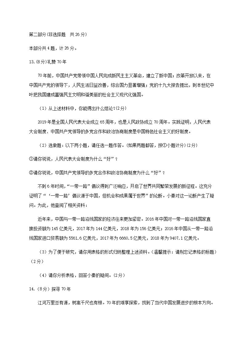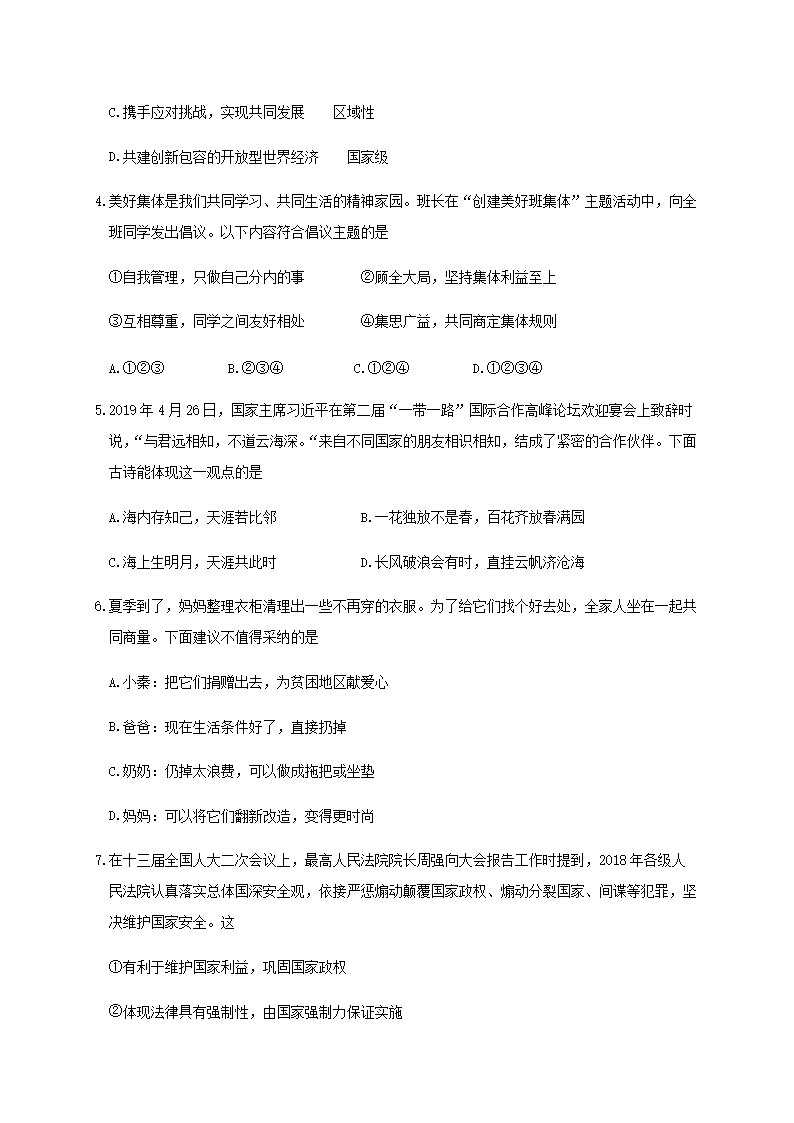 【文档名称】 2019陕西省渭南中考政治真题及答案(Word版).doc