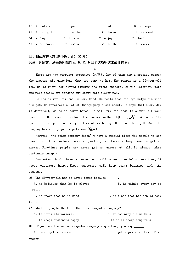 【文档预览】 无忧考网整理发布2015年宁夏石嘴山中考英语真题及答案(Word版),前五页预览如下: