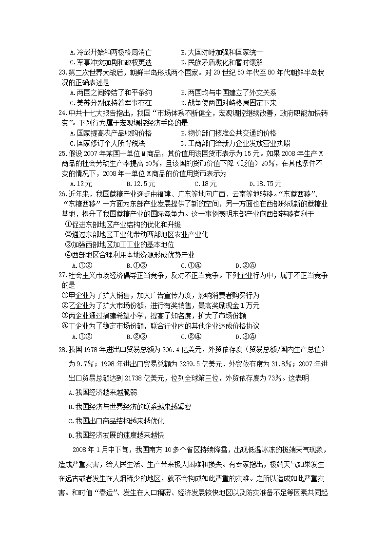【文档名称】 2008年广西高考文科综合真题及答案(Word版).doc