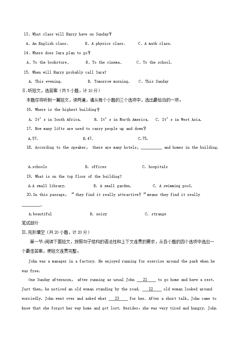 【文档预览】 无忧考网整理发布2019陕西省渭南中考英语真题及答案(Word版),前五页预览如下: